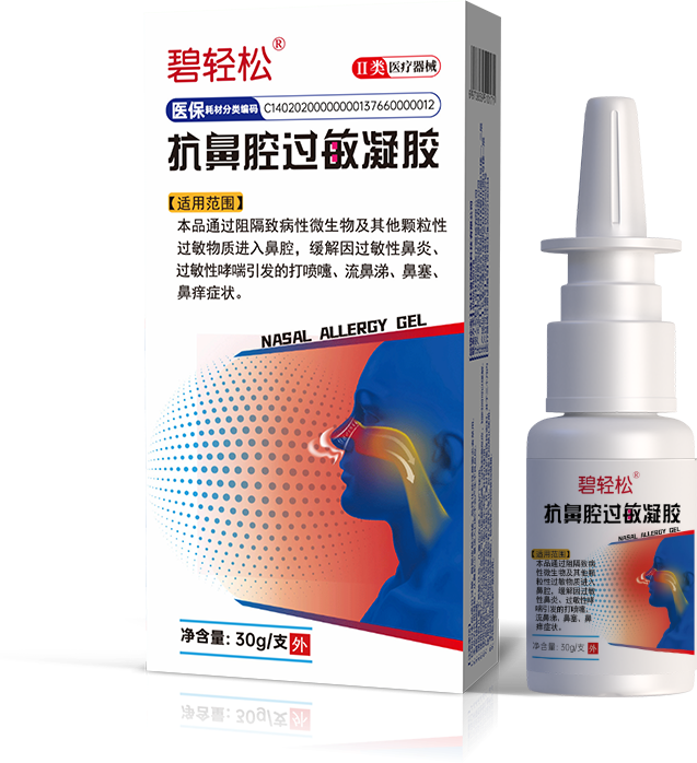 抗鼻腔过敏凝胶由压式包装管或复合软管组成,液体凝胶通过泵头喷出呈水雾状,分子细腻柔和亲肤。本品通过阻隔致病性微生物及其他颗粒性过敏物质进入鼻腔,缓解因过敏性鼻炎、过敏性哮喘引发的打喷嚏、流鼻涕、鼻塞、鼻痒症状。医保可用。 医保耗材分类编码:C17040122200003137660000001
