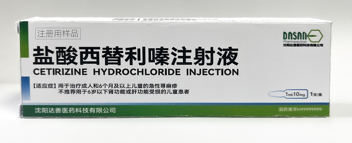 盐酸西替利嗪注射液:急性荨麻疹发作时病程发展快,重症患者可迅速出现喉头水肿甚至呼吸困难,需要起效迅速、能够快速缓解症状的治疗药物。口服制剂达峰时间缓慢,无法迅速控制病情,盐酸西替利嗪注射液起效迅速,可直接入血并迅速作用于全身,更适用于急重症的荨麻疹患者。 目前国内上市的注射剂型均为一代抗组胺药,但禁忌或不良反应较多,在临床使用上受限范围较大[3]。盐酸西替利嗪注射液为二代抗组胺药,无一代禁 忌,且不良反应少。适用于一代抗组胺药限制使用患者的急性荨麻疹治疗。